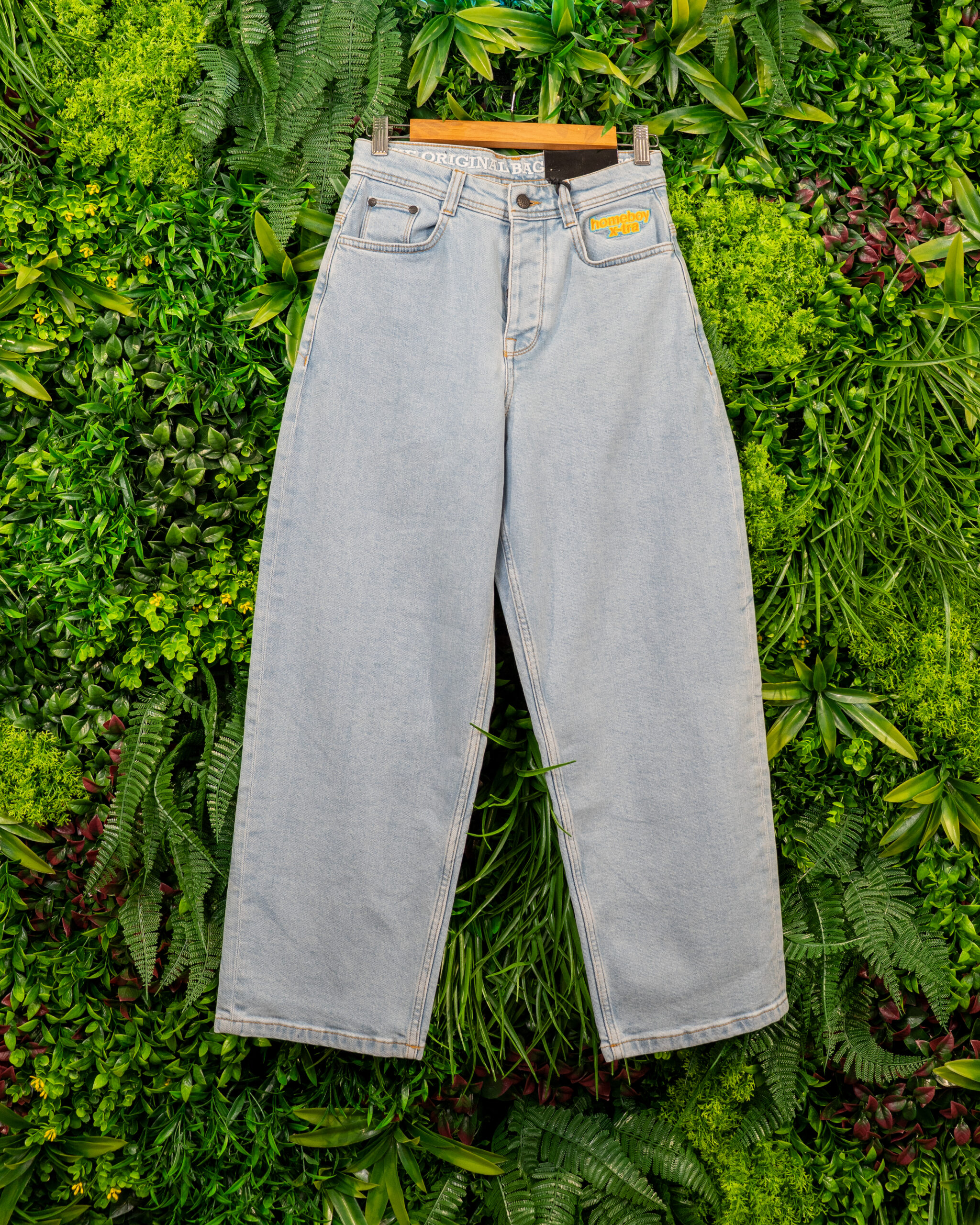 Nos jeans baggy arborent un look vintage classique, fidèlement reproduits avec les détails clés des années 90. Parmi eux, la broderie multicolore « homeboy x-tra » sous la ceinture, la braguette arc-en-ciel et la broderie X sur la poche arrière. Cette dernière est également légèrement plus basse, comme à l’époque, ce qui confère au pantalon une coupe ample supplémentaire.